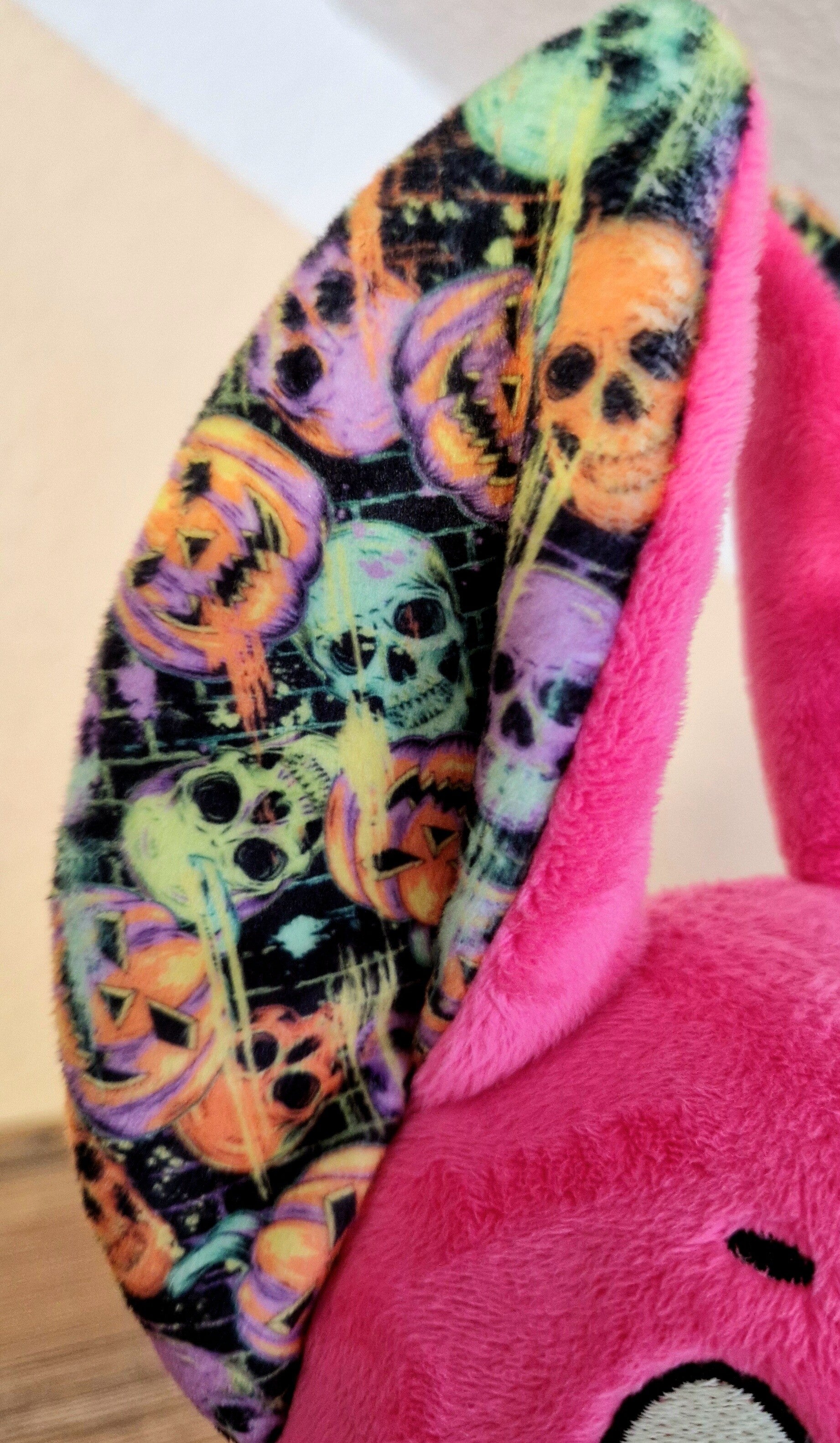 Die Plüschies sind aus Minky genäht. Die Augen sind mit Glowy Garn gestickt. Dieses lichtaktive Garn leuchtet im Dunkeln! In den Flügeln sind Magneten.