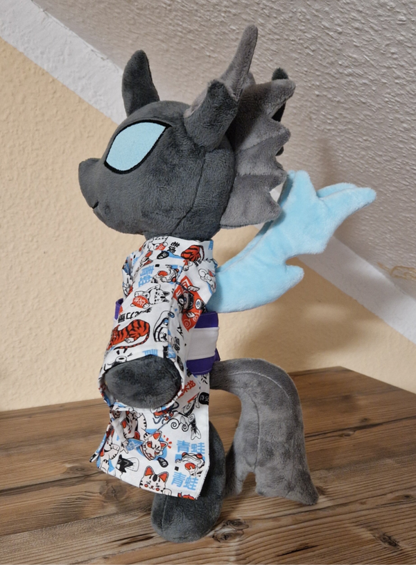 Die Plüschies sind aus flauschigem Minky genäht. Sie hat einen Magneten im Mund:) Yukata ist aus Baumwollstoff und komplett ausziehbar, mit Druckknöpfen.
